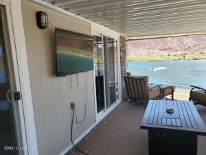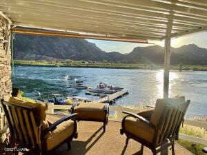 Description: on leased land. RIVERFRONT LIVING! Without the million dollar price tag! No, you don't own the land (not on the reservation, it's private leased land) but you can live here and enjoy the views, launch ramp and docks 365 days a year. This is how the rest of us live at the River! Kick back, relax and enjoy these gorgeous views in this beautifully updated river home. Located on the Parker Strip, Riverfront at Dam Hideaway. Call today for your private showing. Financing Available
