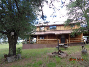 Description: VERY PRIVATELY LOCATED 2 1/2 acres with 3-story CABIN has 300 sq ft finished loft not included in square footage. Quality craftsmanship throughout! Like new interior completed in May 2014: custom slate-tiled showers and bath floors; hand-crafted real wood breakfast bar and shelves in baths. Enjoy the outdoors from the covered, 3-sided wrap-around deck. All appliances included. Generac generator provides automatic back-up power when APS is down. Excellent, deep water well. 2 detached storage sheds. NEW concrete septic tank. RV wastewater dump station. Horses and other livestock allowed. No restrictions. No HOA. Additional 2.5 acres available. Seller has inactive real estate license.