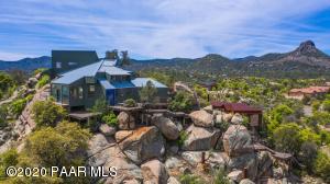 Description: Here is a chance to Own One of The Most Amazing/Unique Homes you will find! Built upon Granite Boulders with Beams that were helicoptered in. 360 Degee Views Including Iconic views of Thumb Butte, sweeping views of Prescott from no less than 10 different decks. You have got to see it to believe it! All New Fresh Paint inside. Lots of Character! Solar is nearly paid off (~$37mo, only kept in place to have it maintained by solar company) New Hot Tub just installed. Views and Walkout Decks from nearly every room. Hurry, this home will not last long!