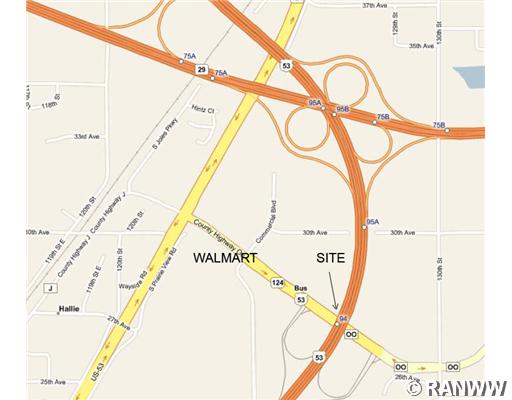 Description: Prime comm'l site with high. Over 1,000' fronting Hwy 53. Just N of Hwy 53/OO exit. Visible from OO/53/29 interchanges Near Walmart, McDonalds, Kwik Trip, other new comm'l developments. Nearly 5 acres. Priced @ 2.95/sf - less than area comparables - for quick sale. Presently is a 2 BR, 1 BA, 20' x 48' home and 20' x 40' garage/ shop/stable/laundry bldgs on site. Buildings are usable and can be rented for interium income, but value is in the land for comm'l redevelopment.. SELLER MOTIVATED!