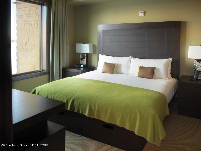 Fabulous valley and mountain views from this 2 bedroom Hotel Terra II unit. Spa, restaurant, pool, fitness center, ski in ski out facilities in the centrally located Teton Village boutique hotel.