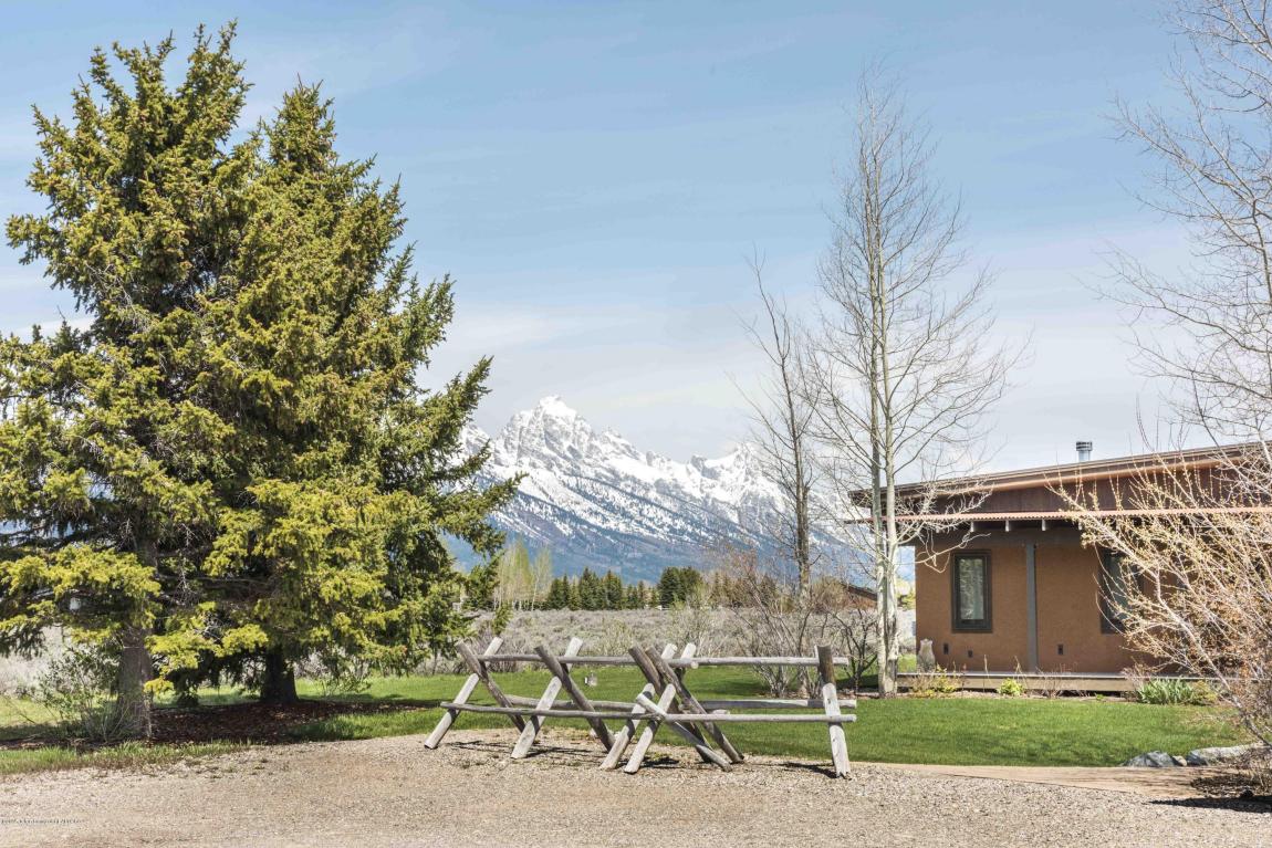 Description Beautifully designed and built home on 5 acres featuring Grand Teton views, 3 bedrooms, 2 baths & media room. The vaulted and beamed expanse of the great room is trimmed with alder cabinets, granite kitchen counters, tile, wood burning fireplace, cypress floors and distressed steel. A wall of windows facing the Tetons offers an eternity of views from the comfort of the great room.Need another bedroom? The detached guest studio offers a 3/4 bath, kitchen within an additional 450 square feet of living space. Easy care exterior of Dryvit and distressed steel.